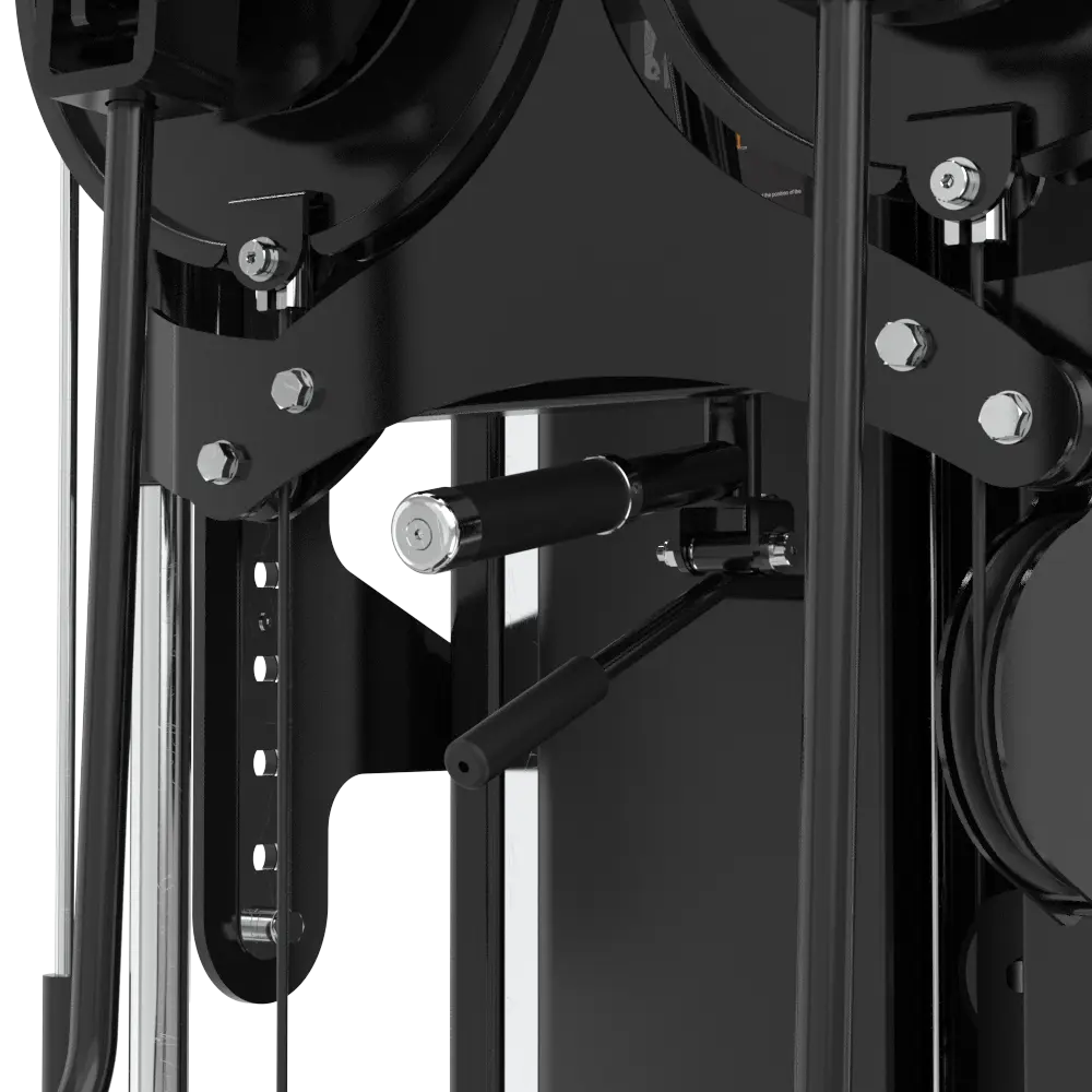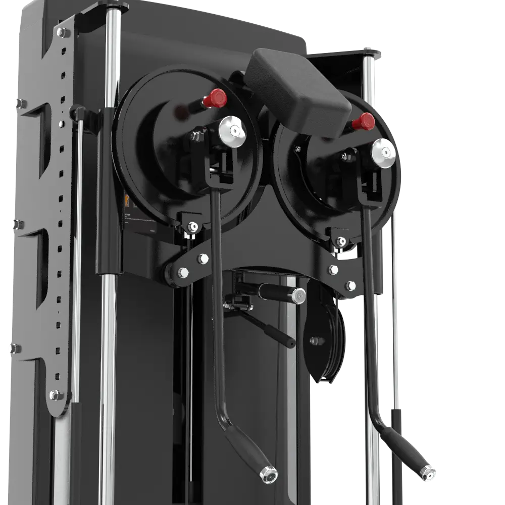 - نظام ضبط الارتفاع (14 مستوى): يتكيف مع مختلف وضعيات التدريب (القائمة والمنحنية)، ليناسب كافة أطوال المستخدمين ومسارات القوة المختلفة.
