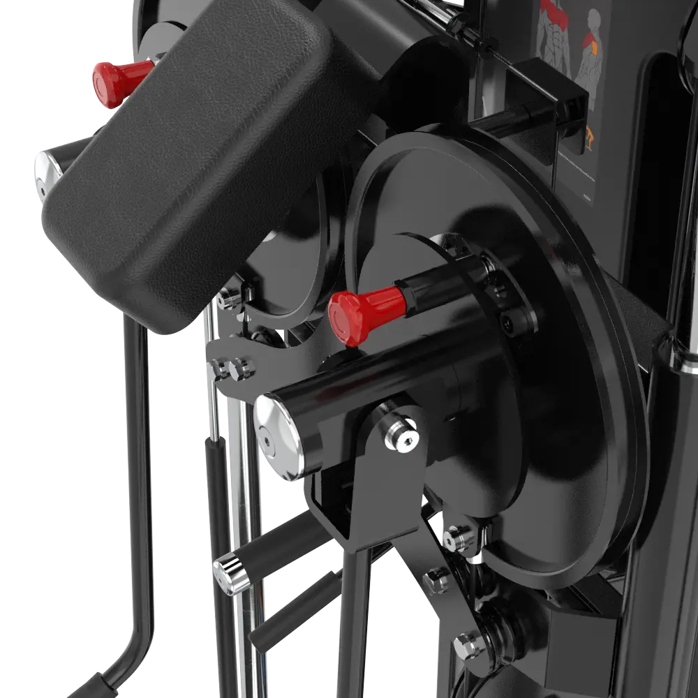 يتضمن الجهاز نظام ضبط للارتفاع مكون من 14 مستوى، يدعم وضعيات التدريب "القائمة" أو "المائلة للأمام" (Bent-over)، مما يضمن محاذاة مسار الحركة بشكل طبيعي مع المنحنى التشريحي لمفصل الكتف. ولتعزيز التركيز، زُوّد الجهاز بمسند رأس مريح يوفر الدعم أثناء تمارين الانحناء، مما يقلل الضغط على أسفل الظهر ويمنع الحركات التعويضية، لضمان عزل عضلي تام.