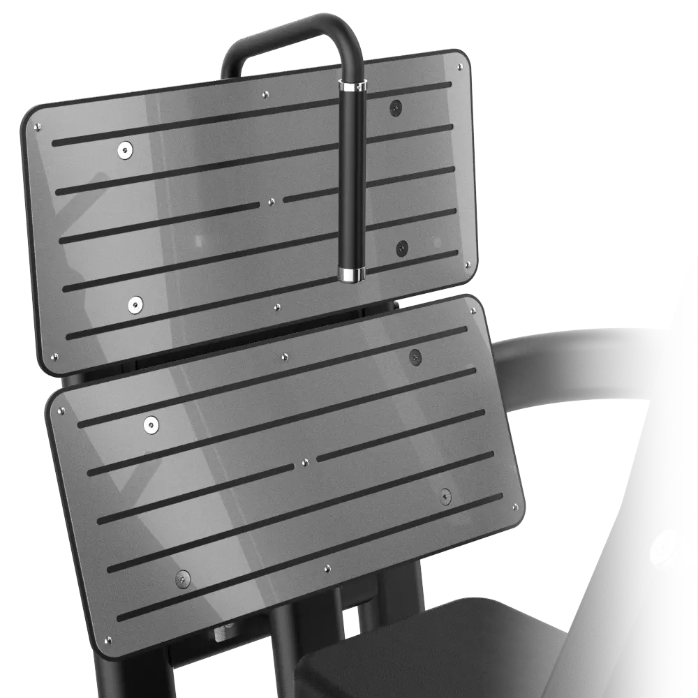 1. تصميم هندسي مريح وقابل للتكيف: يمكن ضبط مسند الظهر بوضعية عمودية أو مسطحة، مدعوماً بمقعد ووسائد أكتاف قابلة للضبط في 9 وضعيات مختلفة. يضمن هذا التخصيص الدقيق محاذاة المفاصل بشكل سليم مع مسار القوة، مما يحقق أقصى قدر من القوة الدافعة مع الحفاظ على سلامة الظهر والركبتين.