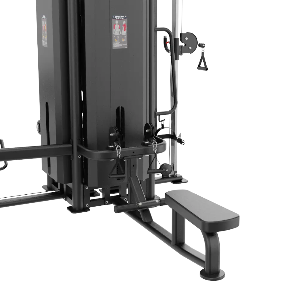• المرونة المطلقة: يوفر نظام البكرات المزدوج 32 وضعية لضبط الارتفاع، مما يتيح التبديل السلس بين تمارين الكابل العالية والمتوسطة والمنخفضة. كما تم تزويد الجهاز بمقابض تثبيت جانبية لدعم الجسم أثناء تمارين الجزء السفلي (مثل الركل الخلفي للأرداف).