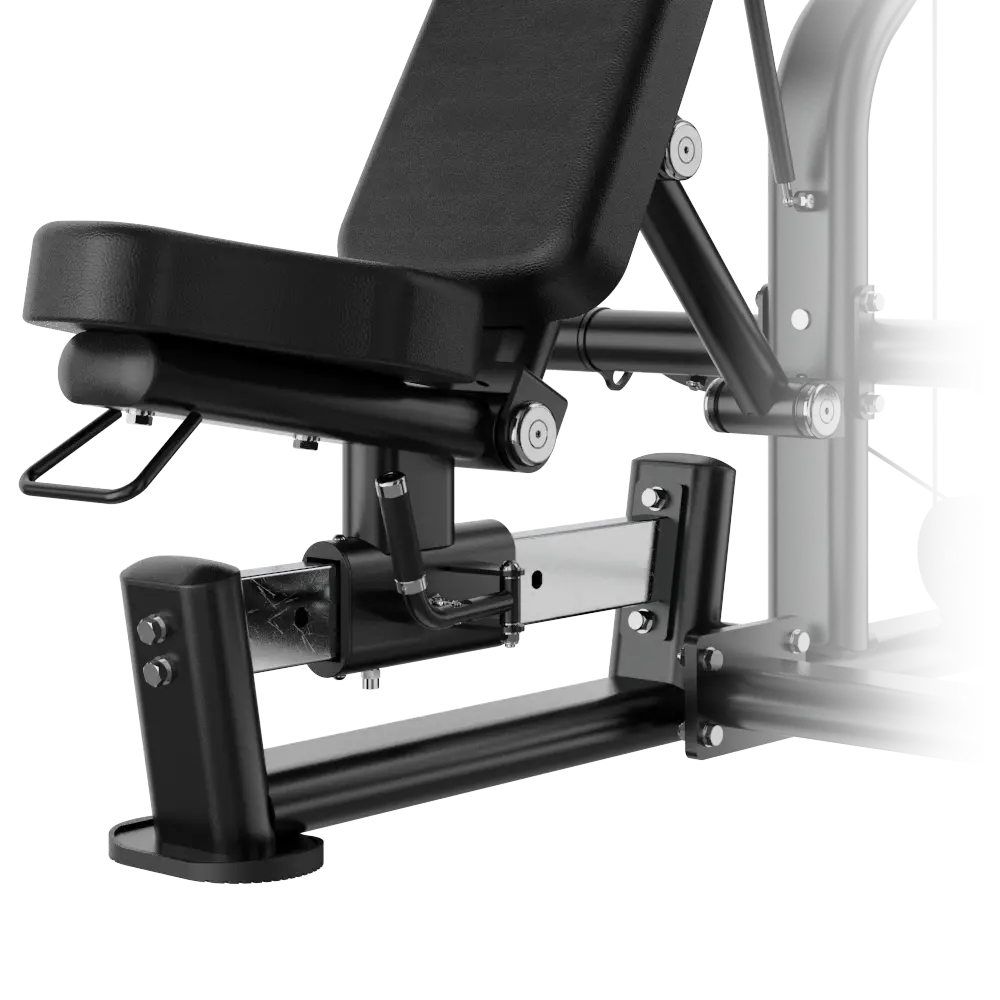 3. نظام الضبط والتنسيق الدقيق: يسمح مسند الظهر والمقعد القابل للضبط في 3 وضعيات بتنسيق دقيق بين وضعية الجسم وزاوية التمرين، مما يسهل الانتقال بين تمارين الدفع المائل (Incline Press) ودفع الأكتاف (Shoulder Press).