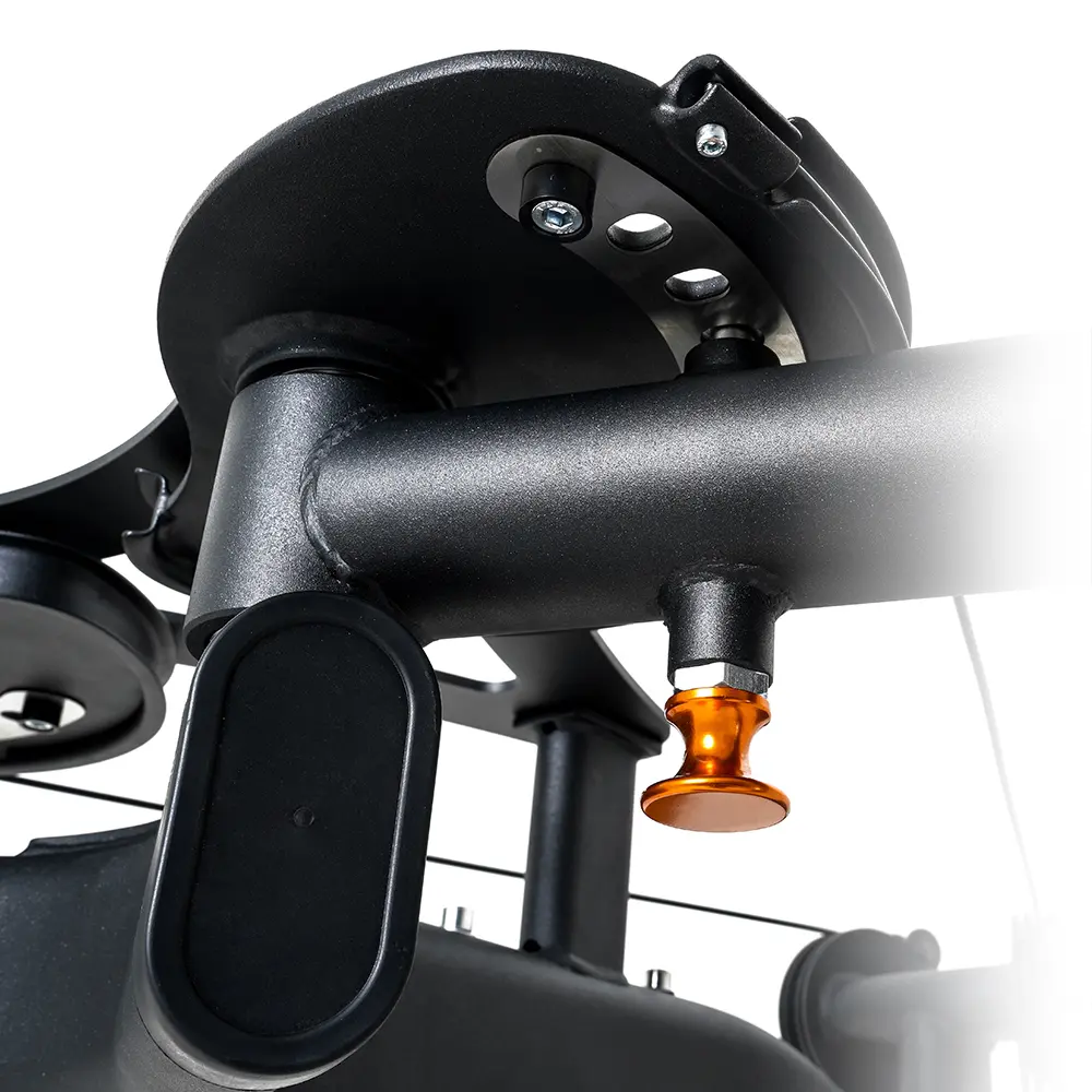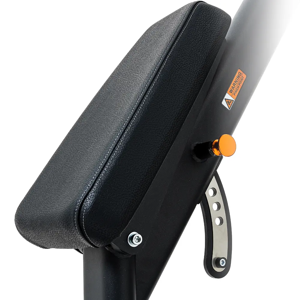 مسند الظهر قابل للتعديل في ستة أوضاع، بينما يوفر المقعد الهوائي إمكانية ضبط دقيقة وسريعة لوضعية المستخدم. جميع التعديلات يمكن إجراؤها بسهولة بيد واحدة، لتجربة تمرين مريحة ومتخصصة لكل أنواع الأجسام.